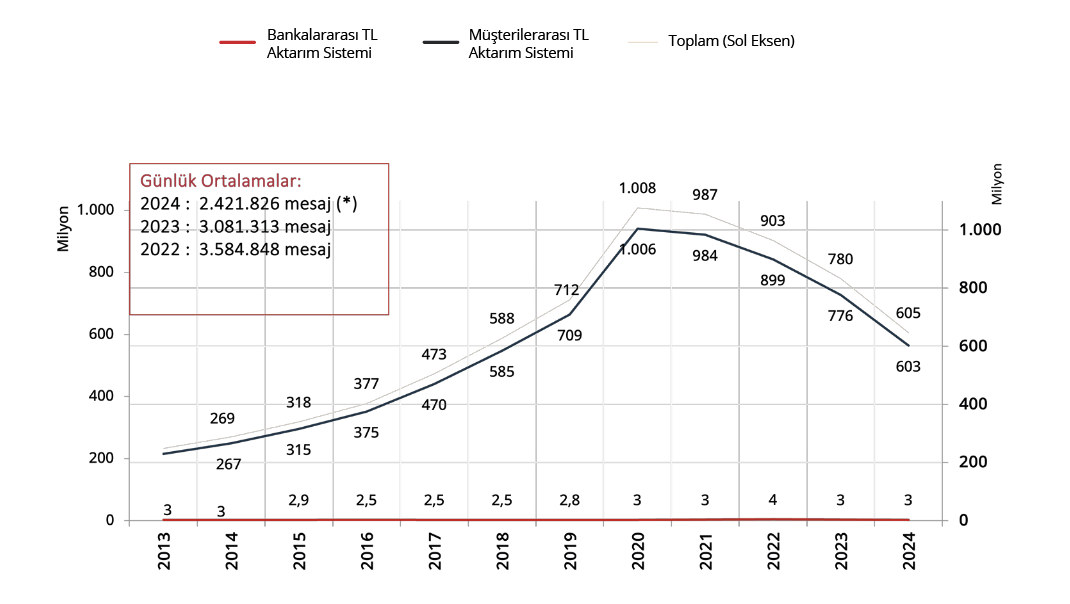 (*) 11.612 adet Bankalararası TL Aktarım Sisteminden ve 2.410.213 adet Müşterilerarası TL Aktarım Sisteminden geçen işlemlerdir.