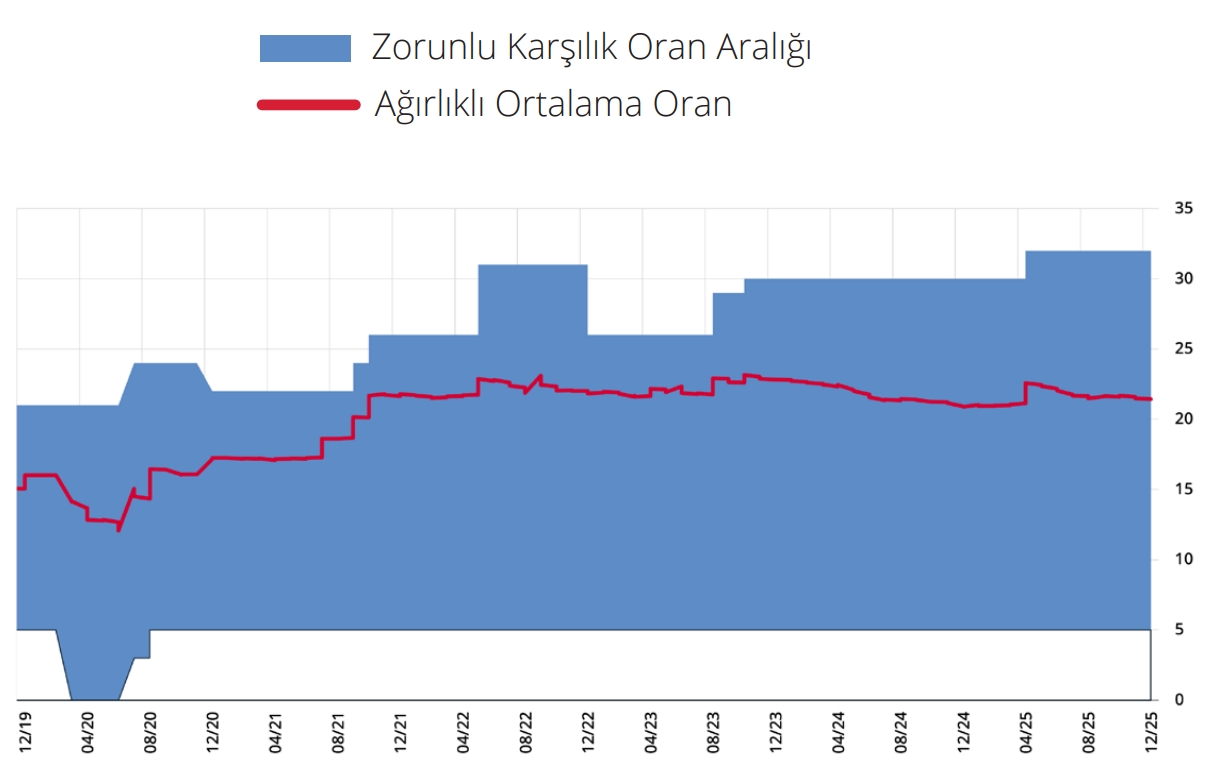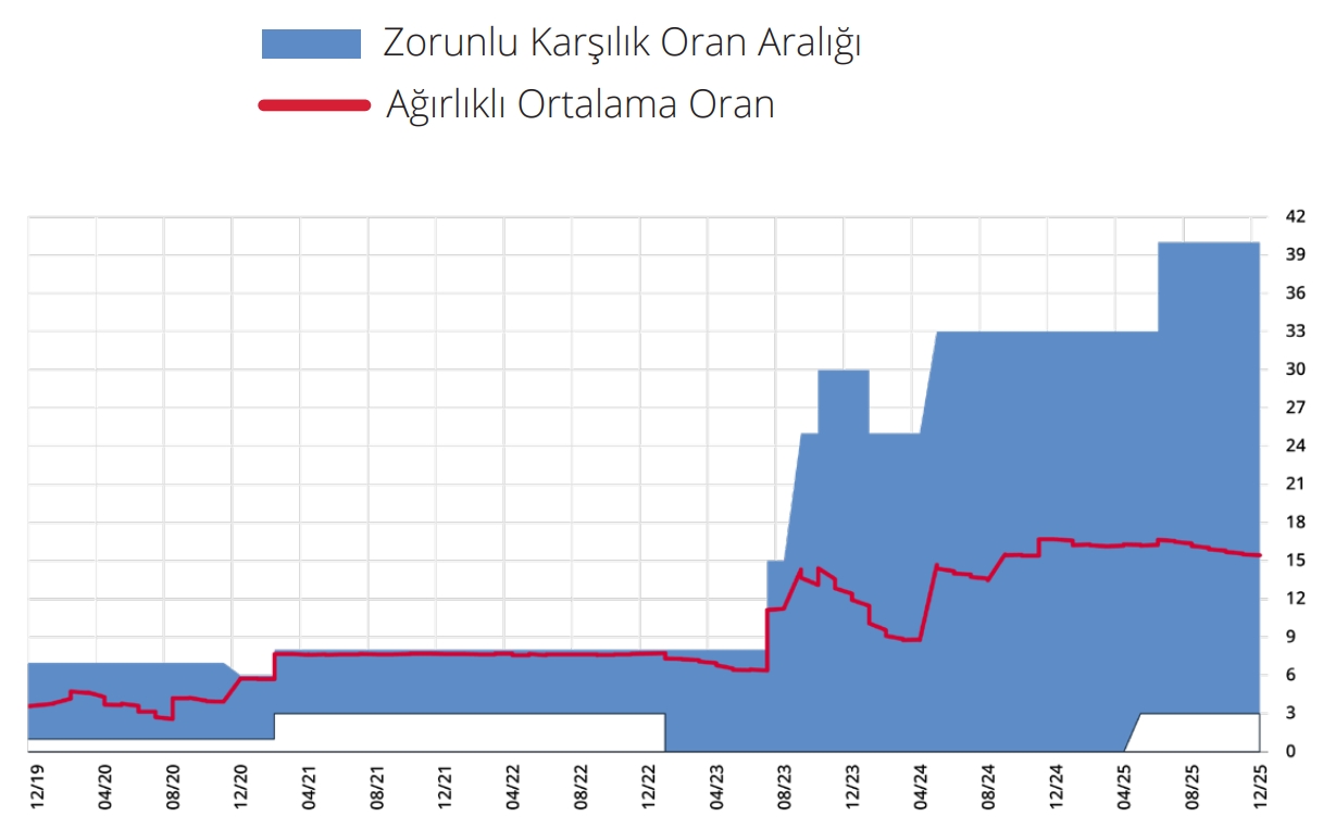 3 Mayıs 2025 tarihinde, yabancı para mevduat/katılım fonu (yurt dışı bankalar mevduatı/katılım fonu hariç ve kıymetli maden depo hesapları dahil) için ZK oranları 200 baz puan artırılmış ve yurt içi yerleşiklerle yapılan 1 yıla kadar vadeli yabancı para cinsinden repo işlemlerinden sağlanan fonlar için ZK oranı 400 baz puan artırılarak yüzde 25’e çıkarılmıştır. 21 Haziran 2025 tarihinde, yabancı para mevduat/katılım fonları için TL cinsinden tesis edilmesi gereken ZK oranı yüzde 4’ten yüzde 2,5’e indirilmiştir. 4 Aralık 2025 tarihinde yapılan basın duyurusu ile zorunlu karşılıklarda sadeleşme adımları açıklanmıştır. Bu kapsamda bankaların ve finansman şirketlerinin yurt dışından doğrudan temin ettiği 1 yıldan uzun vadeli yabancı para yükümlülüklerdeki artış tutarına yıl sonuna kadar yüzde sıfır oranında zorunlu karşılık uygulanmasına ilişkin geçici uygulamanın süresi uzatılmayarak 19 Aralık 2025 itibarıyla sona ermiştir. Bu kararın etkileri de gözetilerek yabancı para ZK oranları gözden geçirilmiş, döviz ve kıymetli maden cinsinden mevduat/katılım fonları için ZK oranları eşitlenmiş ve 1 yıldan uzun vadeli yabancı para diğer yükümlülükler için ZK oranları ise düşürülmüştür. Ayrıca, finansman şirketlerinin yurt içi bankalara olan yükümlülükleri zorunlu karşılık kapsamından çıkarılmıştır.